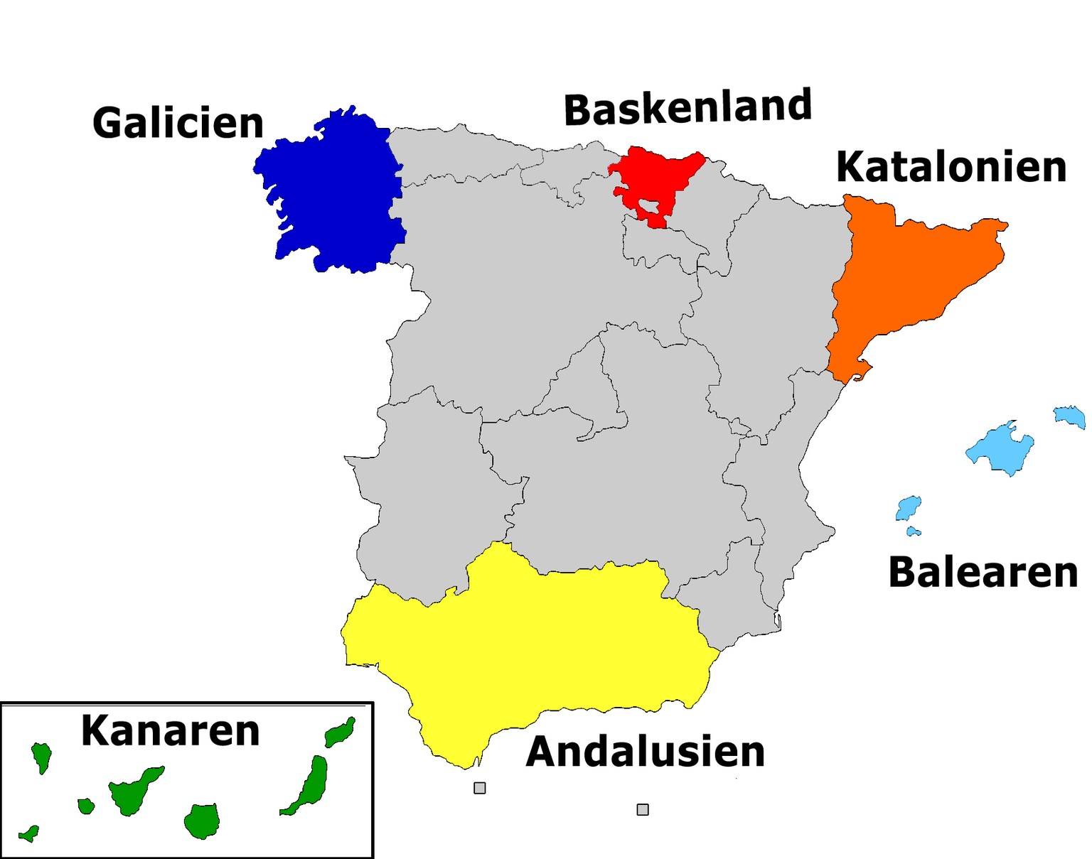 Klicken sie einfach die entsprechende region auf der karte an. Die regionen sind in der ersten verfassung nach franco festgelegt. Spanien ist in 17 autonome gemeinschaften und 2 autonome städte (ceuta und melilla) mit unterschiedlichen ausmaßen an eigenständigkeit gegliedert. Spanien ist unterteilt in 17 autonome regionen ceuta und melilla. Genießen sie zauberhafte strände an faszinierenden küsten oder entdecken sie kleine buchten auf inseln.